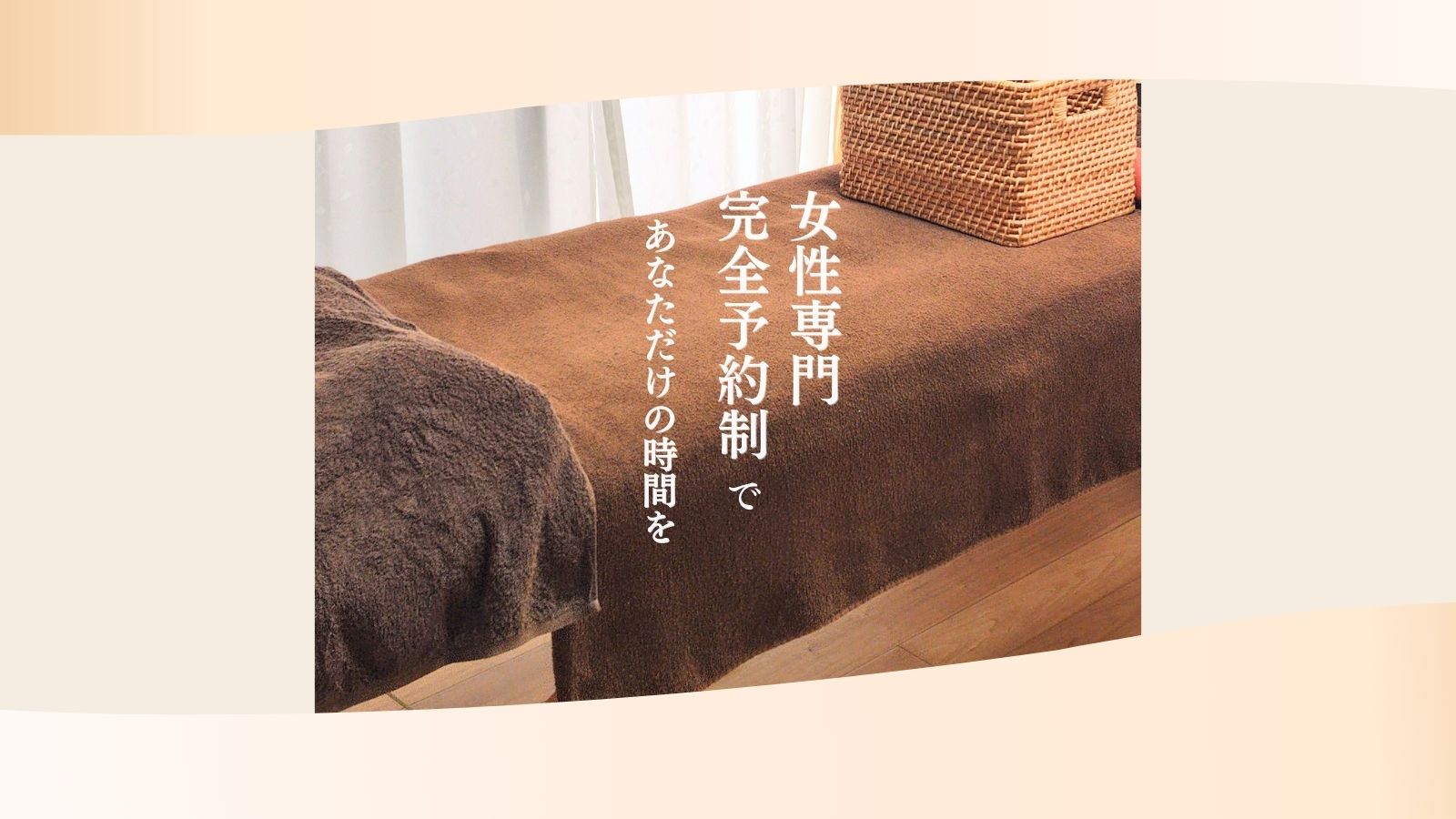 自宅の一室を利用した、完全予約制の女性専用の鍼灸院です。他の患者様とお顔を合わせることはありません。お悩みも、安心してお話しいただけます。