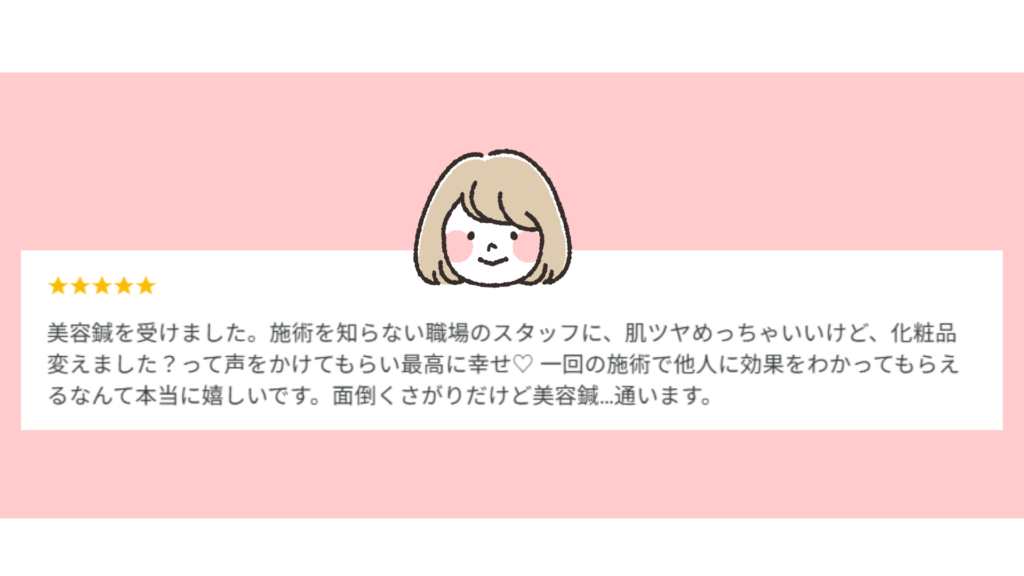 「はりとお灸に興味があり、女の人ということで来てみました。話しやすい雰囲気の先生でおしゃべりが弾みすぎた!」